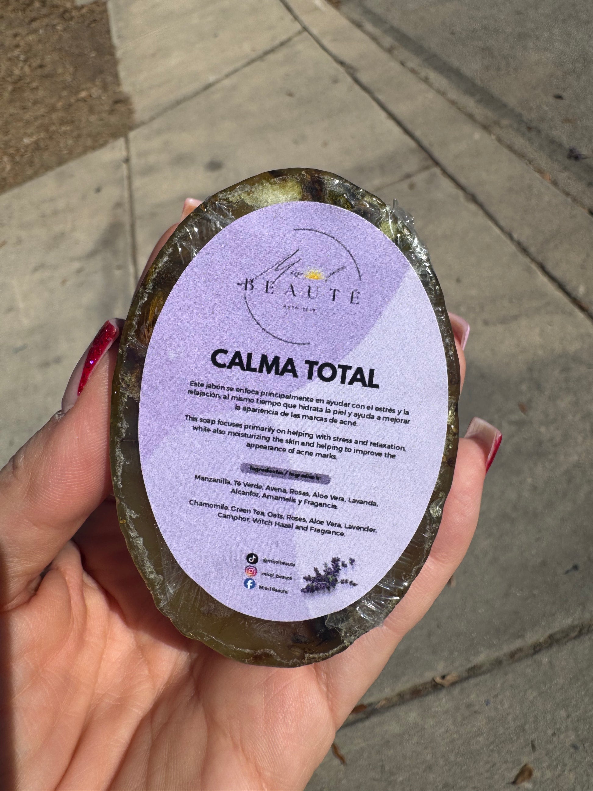 Calma Total está diseñado para personas que viven con estrés, ansiedad o dificultad para relajarse y necesitan un momento de calma profunda. Este jabón limpia profundamente los poros mientras sus ingredientes calmantes ayudan a enviar señales al cerebro para relajarse, desconectarse y preparar el cuerpo para dormir 😌💤